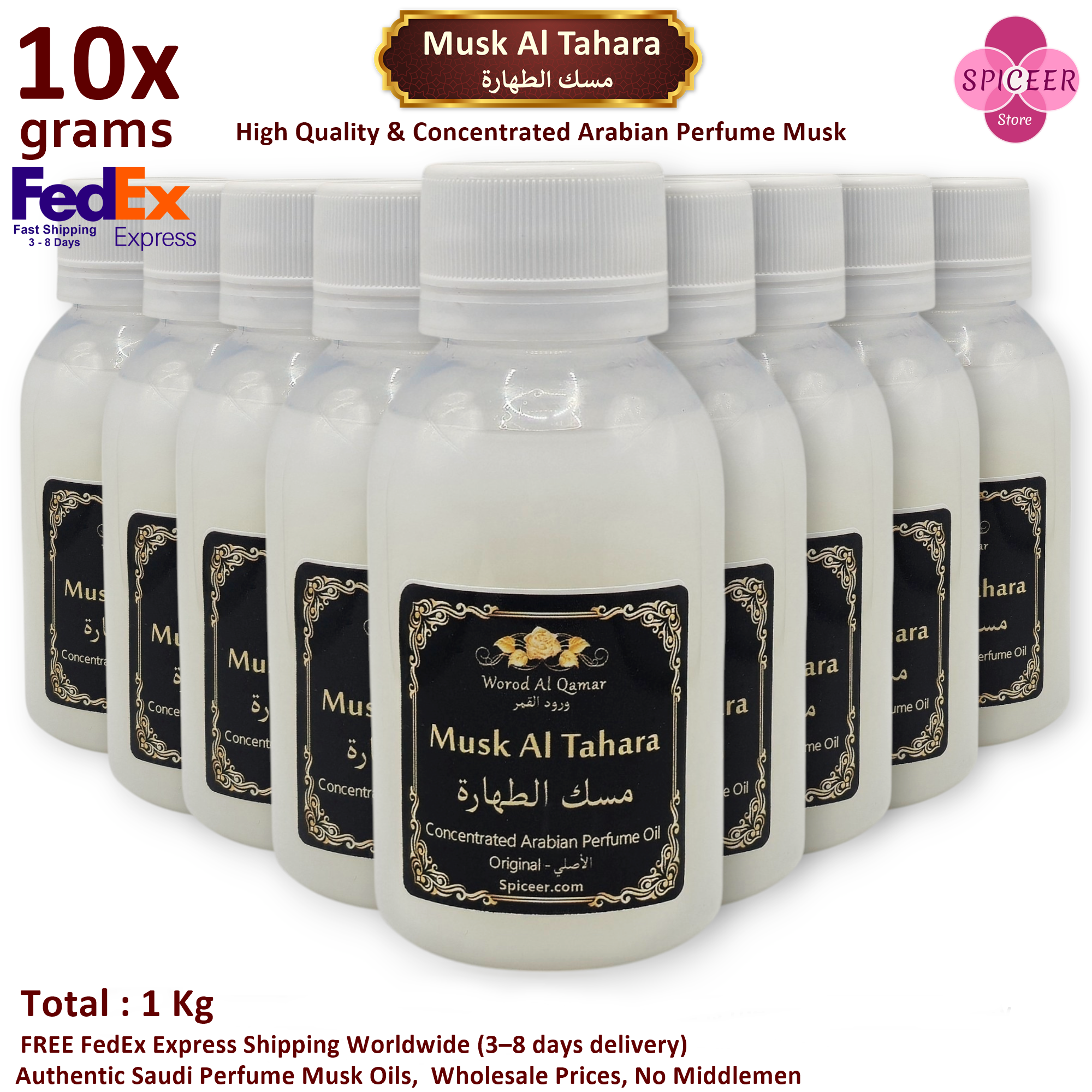 10x 100g Musk Al Tahara, Premium Arabic Perfume Oils (1kg Total) High-Quality, Thick & Concentrated - FREE FedEx Express Shipping (1 Kg) مسك الطهارة