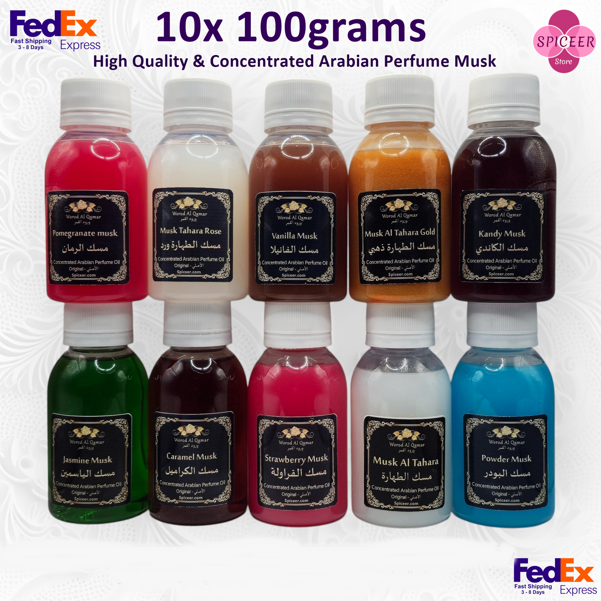 10x 100g Assorted Arabic Perfume Musk Tahara Oils - FedEx Express - 10 Unique Scents Luxury Collection - 1kg Total مجموعة مسك الطهارة
