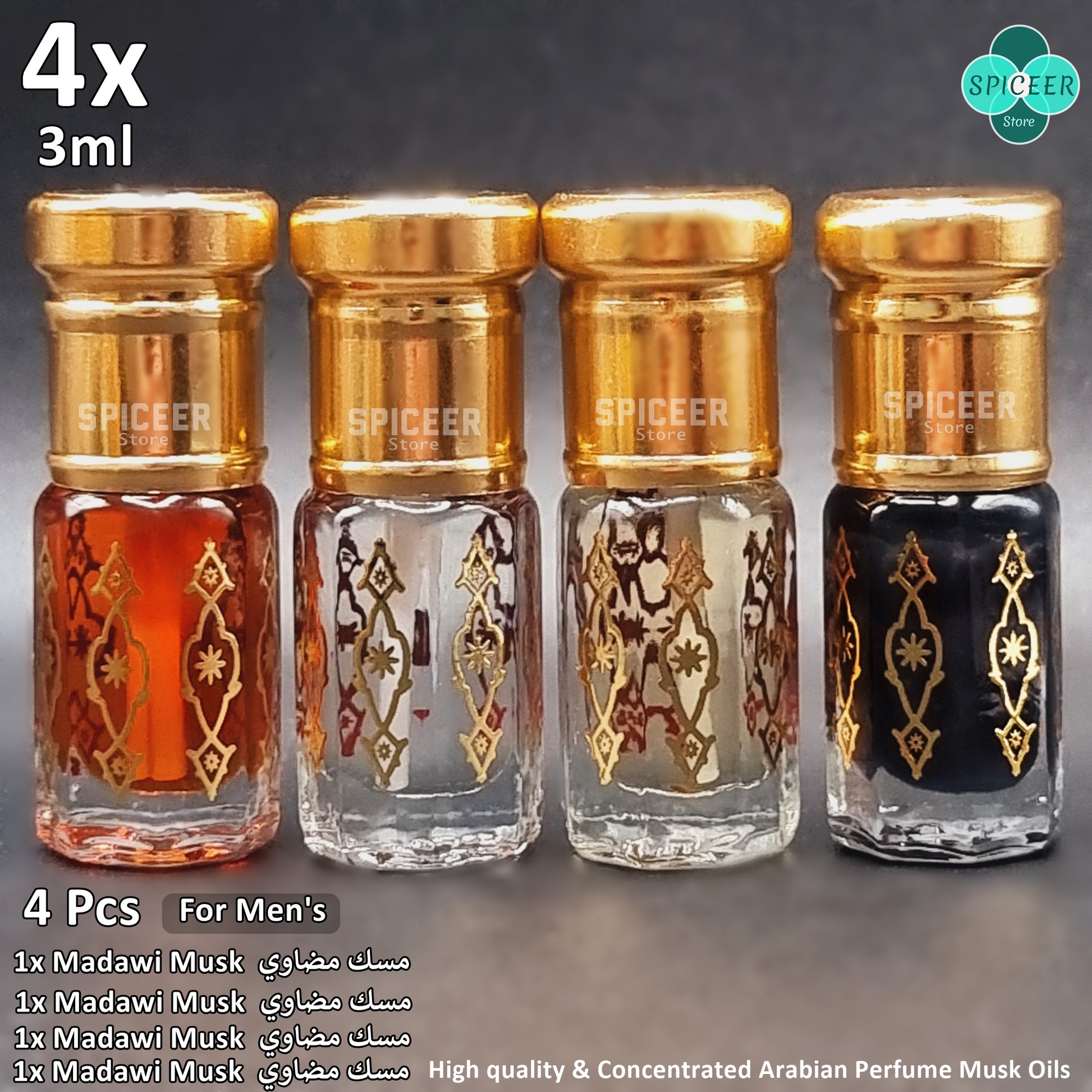 4x Musk For Men High Quality Arabic Perfume Musk Collection 3ml - Black Royal ,Oud, Al Umaraa, Madawi مجموعة مسك للرجال