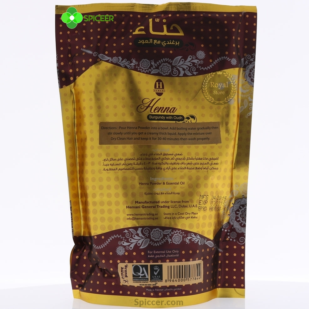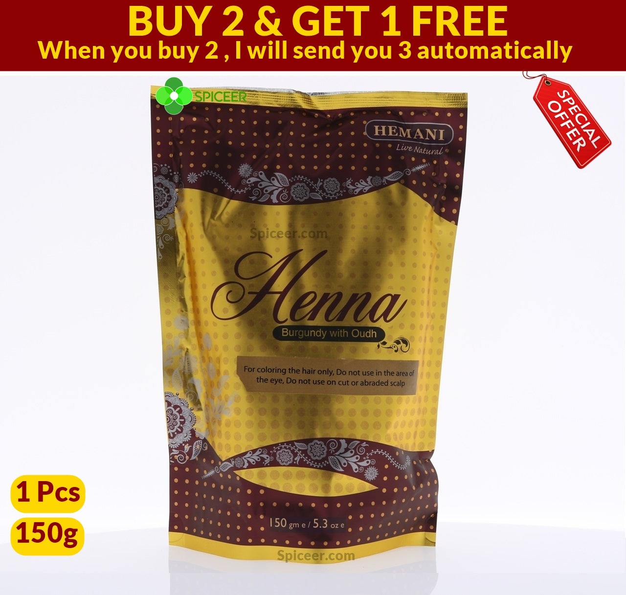 1× Hemani Henna Burgundy with Oudh Color Natural hair Dye - Powder 150g هيماني حنة برقندي مع عود